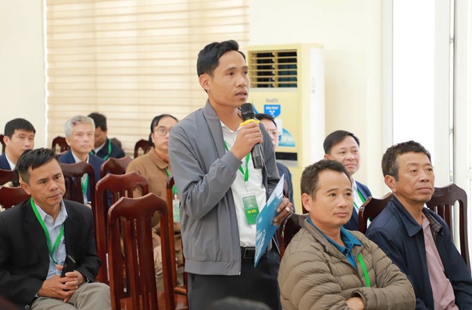 | Ông Nguyễn Chí Viễn – Bí thư Đảng ủy, Chủ tịch HĐND xã Ứng Thiên (Hà Nội) phát biểu đề dẫn. |