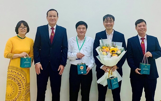 | Đồng chí Nguyễn Đăng Thiện - Ủy viên Thường vụ Công đoàn Học viện tặng hoa BCH Công đoàn Khoa Công nghệ sinh học, khóa V, nhiệm kỳ 2023 – 2028 |