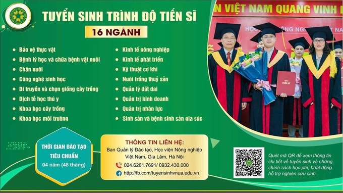 HỌC VIỆN NÔNG NGHIỆP VIỆT NAM TUYỂN SINH TRÌNH ĐỘ TIẾN SĨ NĂM 2025