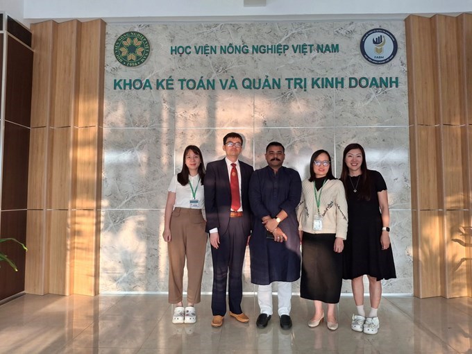 Ngày 01/12/2025, đoàn công tác của trường Đại học Raiganj và trường Đại học Biswa Bangla Bisabidyalay, Ấn Độ đã đến thăm và làm việc tại Khoa Kế toán và Quản trị kinh doanh (KT&QTKD), Học viện Nông nghiệp Việt Nam. Mục đích của chuyến thăm và chương trình làm việc nhằm thảo luận hợp tác về đào tạo và nghiên cứu khoa học giữa Khoa KT&QTKD với các trường đại học Ấn Độ. Đoàn đại biểu các trường đại học Ấn Độ gồm PGS.TS. Tapas Pal – Giảng viên Khoa Địa lý, Trường Đại học Raiganj, trưởng đoàn; TS. Prabhakar Thapa – Khoa Địa lý và Địa Tin học, Trường Đại học Biswa Bangla Bisabidyalay; và TS. Chinmoy Das – Trung tâm Nghiên cứu Nông nghiệp, Trường Đại học Raiganj. Tham gia đón tiếp và làm việc với đoàn công tác có PGS.TS. Đỗ Quang Giám – Trưởng Khoa KT&QTKD, PGS.TS. Nguyễn Anh Trụ – Bí thư Chi bộ, Phó Trưởng Khoa, TS. Phí Thị Diễm Hồng – Phó Trưởng Khoa, và ThS. Trần Mai Loan – Trợ lý Hợp tác quốc tế.
