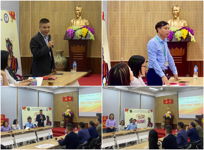 Đại diện Học viện Nông nghiệp Việt Nam, TS. Vũ Văn Tuấn nhấn mạnh, Học viện Nông nghiệp Việt nam cũng rất vui mừng là 1 trong 15 trường được chọn thực hiện dự án trao học bổng năm 2026, đồng thời rất kỳ vọng các hoạt động liên kết giữa hai bên ngày càng nhiều hơn, hiệu quả và chuyên nghiệp hơn. Chia sẻ thêm trong buổi lễ, PGS.TS Đỗ Quang Giám cho biết tập thể sinh viên và giảng viên của khoa luôn trân trọng mối quan hệ hợp tác với VECOM, việc trao học bổng “Chắp cánh tương lai” này là một minh chứng thuyết phục cho quan hệ bền vững giữa hai bên.