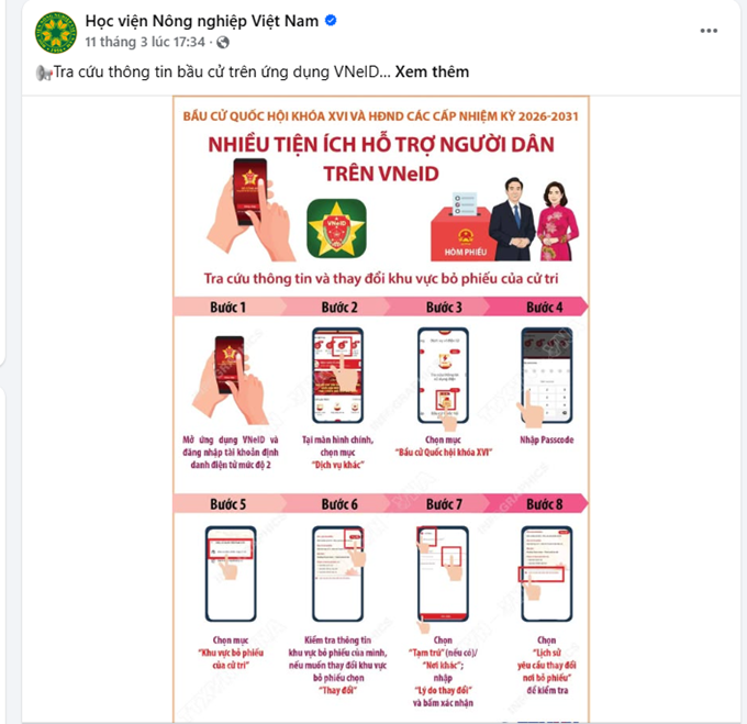 Trước ngày bầu cử, Học viện Nông nghiệp Việt Nam đã tích cực tuyên truyền, phổ biến các quy định về bầu cử, tổ chức các hoạt động giới thiệu tiểu sử ứng cử viên, hướng dẫn sinh viên tra cứu thông tin cử tri và thực hiện các bước bỏ phiếu. Nhờ đó, cán bộ, viên chức, sinh viên trong Học viện đã nắm rõ quy trình và tích cực tham gia ngày hội lớn của toàn dân.