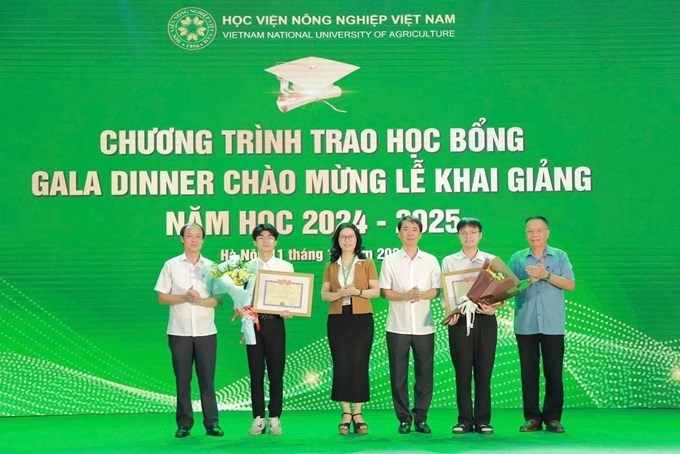 | Chương trình trao học bổng Gala Dinner chào mừng lễ khai giảng năm học 2024 - 2025 của Học viện Nông nghiệp Việt Nam. Ảnh: HVNNVN. |