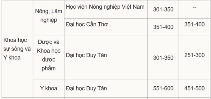 Đáng chú ý, Học viện Nông nghiệp Việt Nam được xếp hạng trong lĩnh vực Nông, Lâm nghiệp (Agriculture & Forestry) ở nhóm 301-350 thế giới, một kết quả rất tích cực đối với lần đầu tham gia bảng xếp hạng uy tín này.