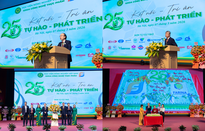 Trong không khí trang trọng và đầy xúc động, Khoa Công nghệ thực phẩm – Học viện Nông nghiệp Việt Nam đã long trọng tổ chức chuỗi sự kiện kỷ niệm 25 năm thành lập (04/3/2001 – 04/3/2026). Sự kiện là dịp để các thế hệ cán bộ, giảng viên, sinh viên và cựu sinh viên cùng nhìn lại hành trình phát triển của Khoa, tri ân những đóng góp của các thế hệ đi trước, đồng thời khẳng định vai trò và vị thế của Khoa trong đào tạo, nghiên cứu khoa học và phát triển ngành công nghiệp thực phẩm của đất nước.