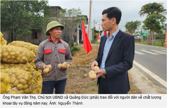 Cuối năm 2025, xã Quảng Đức triển khai hỗ trợ 15 tấn giống khoai tây Atlantic cho các thôn Hải An, Hải Tiến, Hải Thành và bản Cấu Lìm. Cùng với đó là 18 tấn phân hữu cơ được cấp miễn phí. 17 hộ dân lần đầu tham gia mô hình trồng khoai tây vụ đông trên diện tích 12ha. Không chỉ hỗ trợ vật tư, xã còn tổ chức tập huấn kỹ thuật, trực tiếp hướng dẫn từ khâu làm đất, xuống giống đến chăm sóc, phòng trừ sâu bệnh và liên kết doanh nghiệp bao tiêu sản phẩm.