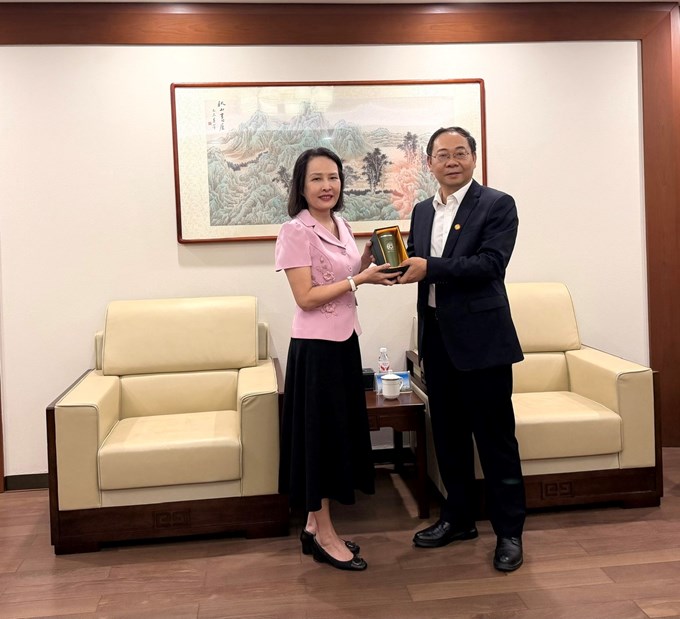 | Chào xã giao và tặng quà Giáo sư Yu Wenjin, Phó Hiệu trưởng trường Đại học Quảng Tây |