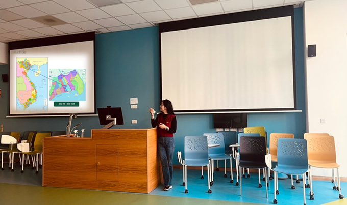 Giảng viên Phạm Thị Thu Hà trình bày seminar tại Đại học DCU