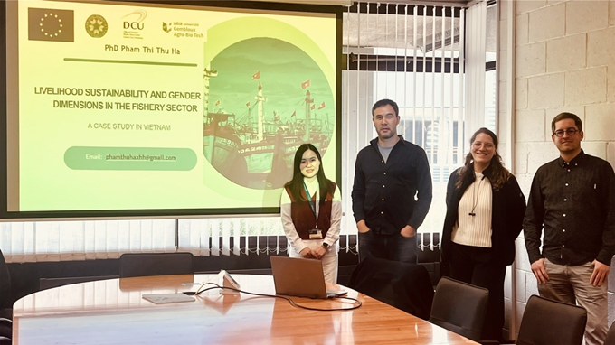 Nội dung trình bày tập trung phân tích tính bền vững sinh kế của các hộ gia đình làm nghề thủy sản tại các vùng ven biển Việt Nam trong bối cảnh suy giảm nguồn lợi tự nhiên và biến đổi môi trường. Trên cơ sở tiếp cận liên ngành, nghiên cứu làm rõ vai trò của các yếu tố kinh tế – xã hội, đặc biệt là các khía cạnh giới trong phân công lao động, tiếp cận nguồn lực, cơ hội việc làm và khả năng thích ứng sinh kế. Kết quả nghiên cứu cho thấy sự khác biệt về giới không chỉ ảnh hưởng đến vị thế kinh tế của các cá nhân trong hộ gia đình mà còn tác động đến chiến lược sinh kế và khả năng chống chịu trước các cú sốc môi trường và thị trường. Buổi seminar cũng là diễn đàn trao đổi học thuật sôi nổi, nơi các học giả tại DCU đã đưa ra nhiều ý kiến phản biện và góp ý về phương pháp nghiên cứu, khung lý thuyết cũng như khả năng mở rộng nghiên cứu theo hướng so sánh quốc tế.