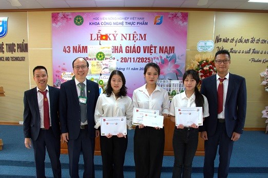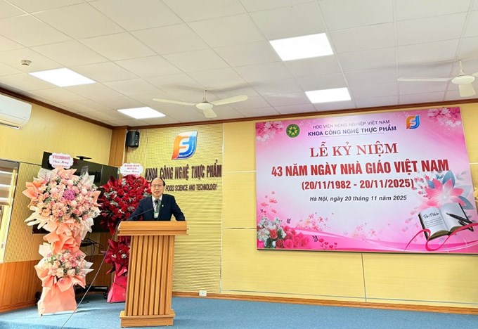 Sáng 20/11, khoa Công nghệ thực phẩm, Học viện Nông nghiệp Việt Nam đã tổ chức Lễ kỷ niệm 43 năm ngày Nhà giáo Việt Nam (20/11/1982 – 20/11/2025) trong không khí trang trọng và ấm áp. Tham dự buổi lễ có nhiều thế hệ cán bộ, giảng viên, sinh viên của khoa và đại diện cơ quan, doanh nghiệp.